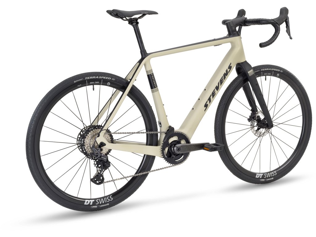 Stevens E-Getaway je špičkové elektrokolo, které přináší dokonalou kombinaci sportovního výkonu a pohodlí pro dlouhé gravel jízdy. Jeho geometrie vychází z úspěšné rodiny Camino, což zaručuje pohodlnou a stabilní pozici na kole. Optimizovaný karbonový rám zajišťuje vysokou tuhost i při zatížení bikepacking doplňky.