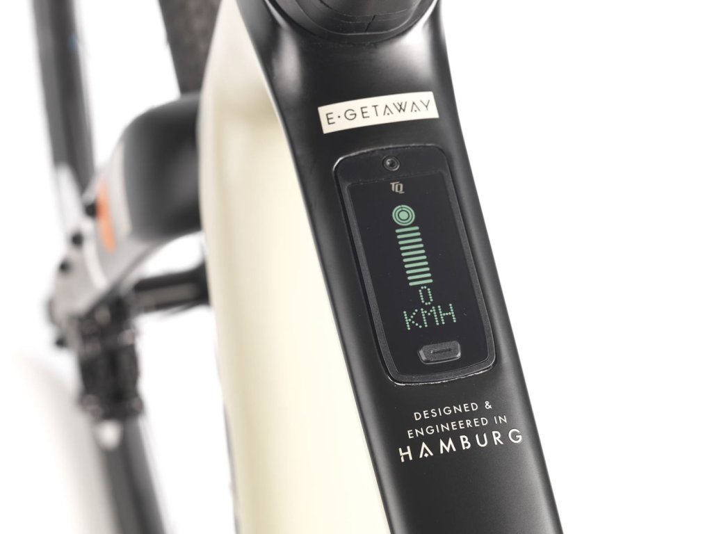 E-Getaway využívá nejnovější generaci pohonů Lite Assist s motorovým systémem TQ-HPR50, který je diskrétně integrován do rámu. Tento motor poskytuje přirozenou podporu vaší jízdy, což oceníte zejména při stoupání a při jízdě s těžšími náklady. Integrovaná baterie s kapacitou 360 Wh, umístěná ve štíhlé dolní trubce, umožňuje dlouhý dojezd, který lze ještě prodloužit pomocí volitelného rozšíření o 160 Wh.